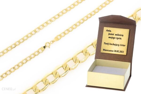 Wymiary:Szerokość 4,7 mmZłoty łańcuszek przedstawiony w naszej ofercie został wykonany z wysokiej jakości złota próby 585.Biżuteria została stworzona z pasją i wielką precyzją, aby zapewnić komfort jej użytkowania.W ofercie posiadamy bardzo duży wybór łańcuszków zarówno pod względem wagi jak również splotu. Dostępne są łańcuszki pełne, solidnie zrobione jak również puste w środku, dzięki czemu osiągają niższą cenę. Posiadamy łańcuszki żółte, białe oraz żółte z elementami białego złota.