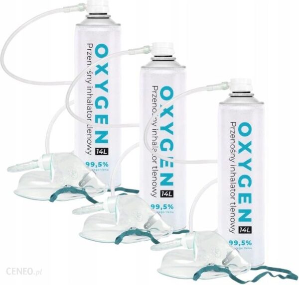 Polskiej produkcji MEDYCZNY TLEN INHALACYJNY w puszce 99% – 14 litrów marki Oxygen.❗️TUTAJ KUPUJESZ 3 zestawy (3x tlen + 3x maska)❗️⚠️ Na innej naszej aukcji kupisz zestaw 6 sztuk w niższej cenie za sztukę ⚠️✅ Tlen inhalacyjny jest zalecany dla:〽️ Przewlekle chorzy – tlen wspomoże system immunologiczny takich osób oraz produkcję hormonów i białek.〽️ Kierowcy – odbudowuje czujność i szybkość reakcji oraz zmniejsza senność i ziewanie podczas długich monotonnych tras.〽️ Studenci – środek ten poprawia pamięć i koncentrację na krótki okres czasu, ale czasami bardzo ważny moment, np. podczas egzaminów.〽️ Sportowcy – tlen to źródło energii dla mięśni i mózgu. Przyspiesza odnowę ATP, głównego nośnika energii w komórkach, co pozwala na szybszy powrót do kolejnej serii ćwiczeń.〽️ Ludzie otyli – tlen jest najważniejszym czynnikiem w procesie metabolizmu przy spożywaniu posiłków tłustych oraz wysoko węglowodanowych, jak i cukrów czy alkoholu. Nasz organizm musi zużyć więcej tlenu do rozbicia tych substancji niż np. białek.✅ Specyfikacja:〽️ Marka Oxygen〽️ Wyposażony w wygodny zawór, rurkę i maskę〽️ Stężenie: 99% czystego tlenu〽️ Bezwonny〽️14L skondensowane w niewielkiej puszce〽️ produkt wyprodukowany w Polsce〽️ Instrukcja obsługi w j. polskim✅ Zestaw:〽️ 3x Tlen inhalacyjny Oxygen (14L)〽️ 3x Maska + dren✅ Tlen inhalacyjny Oxygen jest idealny osób z problemami układu oddechowego, niewydolnością krążenia, jak i cieszy się dużym uznaniem wśród:〽️ Sportowców〽️ Kierowców〽️ Studentów〽️ Biznesmenów〽️ Ludzi cierpiących na bezsenność〽️ Z powodzeniem także stosowany w kosmetyce dla poprawy cery