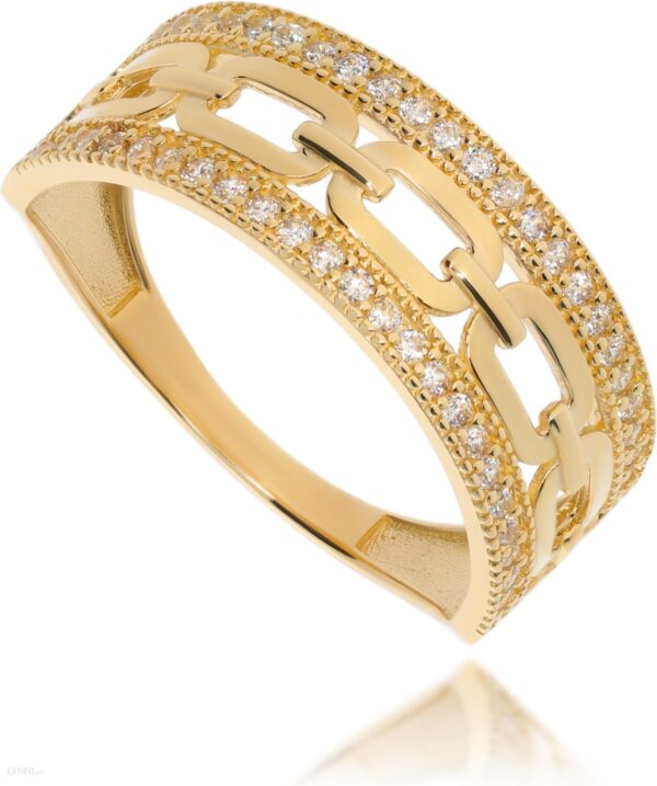 Wymiary: Szerokość oczka/szyny 8mm Szerokość szyny 2 mm Złoty pierścionek przedstawiony w naszej ofercie został wykonany z wysokiej jakości złota próby 585. Biżuteria została stworzona z pasją i wielką precyzją, aby zapewnić komfort jej użytkowania. Złoty pierścionek przeznaczony jest dla wyjątkowej kobiety, umiejącej docenić prawdziwe piękno i ponadczasowość produktu. Proszę o wybranie odpowiedniego rozmiaru. W przypadku braku Twojego rozmiaru istnieje możliwość zwiększenia lub zmniejszenia pierścionka, po konsultacji z nami. W ofercie znajduje się bogaty wybór pierścionków charakteryzujący się różnorodnym wzornictwem i gramaturą. Są to pierścionki z diamentami lub z cyrkoniami w różnych kolorach zależnie od modelu.