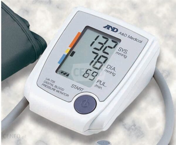 Ciśnieniomierz AND UA-705 półautomatyczny, naramiennyProfesjonalne urządzenie do użytku domowegoŁatwy i wygodny w obsłudzeCzytelny, 3-liniowy wyświetlaczDokonuje pomiaru przy nieregularnym pulsie – IHBAutomatycznie umieszcza wynik w odpowiednim przedziale: optymalne ciśnienie, łagodne, średnie lub wysokie nadciśnienie wg klasyfikacji Światowej Organizacji Zdrowia* (WHO)Wygodny komfortowy mankiet – technologia „SlimFit”Pamięć ostatnich 30 pomiarów, wskazuje średni wynikZasilany jedną baterią AA (2000 pomiarów)Opis techniczny:wyposażenie opcjonalne (dodatkowo płatne) -rodzaj produktu naramiennymetoda pomiaru oscylometrycznazakres pomiaru ciśnienie: 20÷280mmHg, puls: 40÷200bpmdokładność pomiaru ciśnienie: +/- 3 mmHg, puls: +/- 5%nieregularny puls dokonuje pomiaru przy nieregularnym pulsie – IHBtest kliniczny BHS A/A**, AAMI***mankiet obwód ramienia 22÷32 cminflacja mankietu manualna pompka z zaworkiemdeflacja mankietu automatyczny zaworek spustowywyświetlacz LCD – 3 liniowyzasilanie 1 bateria AA 1,5V (ok. 2000 pomiarów)waga 120 g (bez baterii)wymiary 81x54x105 mm (bez mankietu)warunki pracy temp.: 10÷40°C, wilgotność: 30÷85%przechowywanie temp.: -10÷60°C, wilgotność: 30÷85%identyfikacja wyniku automatyczna identyfikacja wyniku wg klasyfikacji WHOpamięć 30 ostatnich pomiarów; wskazuje średni wynikfunkcja zegara brakokres gwarancji 3 lata