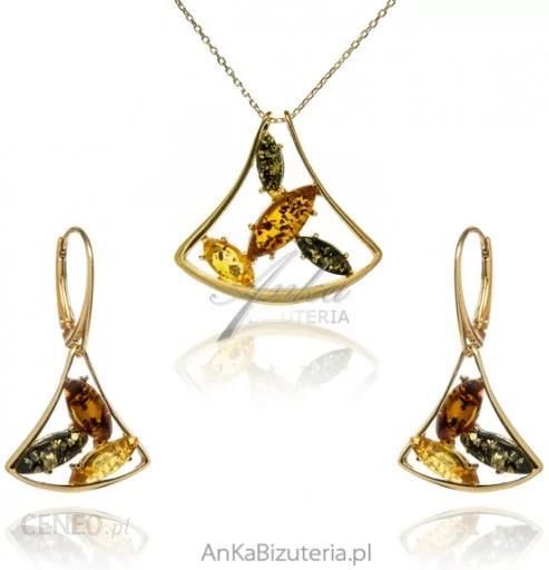 nr. produktu : 15.223Srebrny komplet pr. 925Uszlachetnienie srebra: pozłacany 24 k złotemKamienie: naturalny bursztyn bałtycki w kolorze żółtym ,koniak, zielonyWisiorek:Waga wisiorka~ 3,65 gDługość wisiorka: : 2,8 cmSzerokość wisiorka:: do 3,3 cmKolczyki:Waga kolczyków ~ 4 gWymiary kolczyków -dł. 3,5 cm razem z zapięciem/ szerokość do 2 cmTyp zapięcia kolczyków – angielskieOpakowanie do kompletu gratis – na zdjęciu.Na zdjęciu zawieszka z łańcuszkiem pozłacanym ANKIER 0,4 – w ofercie sklepuCertyfikat autentyczności bursztynu załączony do biżuterii….https://www.ankabizuteria.pl/bizuteria-srebrna-pozlacana-z-kolorowym-bursztynem