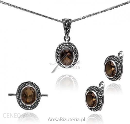 Nr. produktu : 220.57Srebrny komplet pr. 925Uszlachetnienie srebra: oksydowanyKamienie: sultanit, markazytyWisiorek:Waga wisiorka~ 3 gDługość wisiorka: : 2,6 cmSzerokość wisiorka:: do 1,3 cmKolczyki:Waga kolczyków ~ 6,1 gWymiary kolczyków – dł. 1,4 cm x szerokość do 1,2 cmTyp zapięcia kolczyków – angielskiePierścionek:Waga pierścionka ~ 4,2 gWymiary pierścionka – dł. 1,5 cm x szerokość do 1,2 cmOpakowanie do kompletu gratis – na zdjęciu.Unikatową cechą zultaniów jest zmiana barwy w zależności od oświetlenia. W świetle dziennym zultanity charakteryzują sięzielono- oliwkową barwą, natomiast w sztucznym świetle nabierają czerwonawy odcieńKamień Zultanite występuje naturalnie tylko i wyłącznie na terenie Turcji, a konkretnie w górzystych terenach Anatolii. Najczęściej wydobywa się go w górach Ilbir,w południowo-zachodniej Turcji (na wysokości ok. 1200 metrów n.p.m.)Na zdjęciu zawieszka z łańcuszkiem Etrusca rodowany – w ofercie sklepu AnKa….https://www.ankabizuteria.pl/bizuteria-srebrna-z-sultanitem-joy-to-the-world