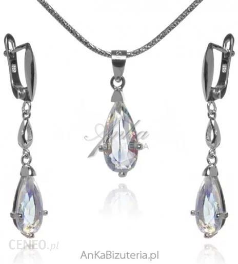 nr. produktu : 230.60abSrebrny komplet pr. 925Uszlachetnienie srebra: rodowaneKamienie: Aurora Borealis kryształyWisiorek:Waga wisiorka~ 1 gDługość wisiorka: : 2 cm razem z przywieszkąSzerokość wisiorka:: do 0,6 cmKolczyki:Waga kolczyków ~ 3,4 gWymiary kolczyków – długość całkowita z biglem 3,7 cm/ szerokość do 0,6 cmTyp zapięcia kolczyków – bigiel angielskiOpakowanie do kompletu gratis – na zdjęciu.Na zdjęciu zawieszka z łańcuszkiem NUANCE — w ofercie sklepu AnKa….https://www.ankabizuteria.pl/elegancka-bizuteria-srebrna-z-cyrkonia-aurora-borealis