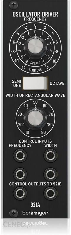 Behringer 921A Oscillator Driver legendarny moduł Analog Oscillator Driver w formacie eurorackGłówne cechy:Kontroluje do 12 równoległych modułów OSCILLATOR 921BWykorzystywany przez najbardziej znanych muzyków rockowych, jazzowych czy pop Autentyczne odwzorowanie obwodów z serii „Modular 55” i „35”2 zsumowane wejścia CV do sterowania częstotliwością i 2 zsumowane wejścia CV do PWMWyjścia wysokoprądowe dla częstotliwości i szerokości impulsu do sterowania wieloma modułami 921BPrzełączany selektor półtonów / oktaw oraz ręczna regulacja szerokości impulsuDane techniczne Eurorack: 8 HP, 15 mA +12 V, 15 mA -12 V.Zaprojektowany w Wielkiej Brytanii