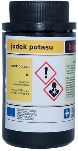 BiomusJodek potasuSynonimy: potassium iodideGatunek: Czysty do analizCzystość: Czysty min. 99,5%Wzór chemiczny: KIJodek potasu to nieorganiczny związek chemiczny. Jest to sól potasowa kwasu jodowodorowego posiadająca wzór KI.—————————————————–Warunki przechowywania: Przechowywać w suchym zacienionym i chłodnym miejscu. Używać zgodnie z przeznaczeniem (odczynnik chemiczny). Chronić przed dziećmi.Producent: Biomus Lublin ul. Chemiczna 7UWAGA ——>