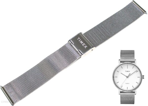 Oryginalna stalowa błyszcząca bransoleta do zegarka TIMEX TW2R26600. Szerokość 18 mm. Model PW2R26600. Bransoleta pasuje do każdego zegarka ze standardowym mocowaniem o szerokości 18 mm. Teleskopy Easy Click w zestawie