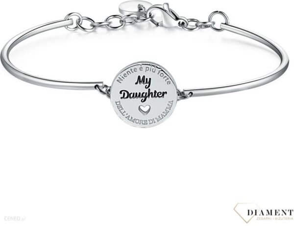 Bransoletka damska stalowa Brosway Chakra Moja Córka. Do Ciebie, który uczyniłeś moje życie tak wyjątkowym, do Ciebie, który zawsze będziesz moją małą gwiazdką… Pamiętaj, że nie ma nic silniejszego niż miłość Twojej matki.Sztywna bransoletka wykonana ze stali. Bransoletka z zawieszką w kształcie blaszki z wygrawerowanym napisem Nic nie jest silniejsze niż miłość matki oraz wycięty napis My Daughter (Moja córka). Biżuteria została stworzona do noszenia na co dzień i na każdą okazję. Ponadczasowa stylistyka, niezwykłe wzornictwo i precyzyjne wykonanie. Bransoletka stalowa to świetna propozycja na prezent.CÓRKA: ŻYCIE, SIŁA, MIŁOŚĆStalowa biżuteria dostępna w naszym sklepie to połączenie klasy, stylu oraz elegancji. Starannie wyselekcjonowane dodatki zachwycają wysoką jakością użytych materiałów, dbałością o każdy, nawet najmniejszy szczegół oraz niebywałą precyzją wykonania. Stworzone z myślą o każdej kobiecie, doskonale prezentują się w każdych warunkach. Zapraszamy do zapoznania się z pozostałą częścią naszej wyjątkowej kolekcji.> Kolekcja ChakraZerknij na pozostałą ofertę!> Bransoletki damskie> Kolczyki srebrne> Pierścionki srebrne> Naszyjniki srebrneNasz sklep internetowy z biżuterią damską Diament jest autoryzowanym dystrybutorem marki. Cała kolekcja złotej, srebrnej i stalowej biżuterii Diament zakupiona w naszym sklepie posiadają 2 letnią gwarancję i zapakowane są w oryginalne opakowanie.