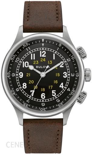 Bulova A-15 Pilot 96A245 to model inspirowany wojskowym zegarkiem A-15 z 1944 roku. Czasomierz posiada kopertę wykonaną z najwyższej jakości stali szlachetnej 316L połączoną ze skórzanym paskiem w brązowym odcieniu. Zegarek wyposażono w dwie obrotowe tarcze odpowiedzialne za godziny oraz minut, które możemy niezależnie regulować za pomocą koronek. Arabskie oznaczenia godzin w jasnym odcieniu idealnie kontrastują z czarnym cyferblatem, dzięki czemu odczyt wskazań nie sprawia problemów. Całość przykrywa szkło szafirowe. Model wyposażono w automatyczny mechanizm, który zasilany jest poprzez ruch ręki. Wodoszczelność 30 M chroni zegarek przed drobnymi zachlapaniami.