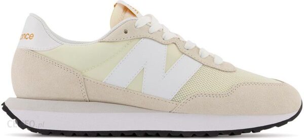 Buty damskie New Balance WS237 – żółto–beżoweDamskie sneakersy New Balance to klasyczny model męski, który czerpie garściami z naszych dawnych projektów.Swoją niepowtarzalną i stylową sylwetkę zawdzięczają połączeniu stylistyki retro z nowoczesnym designem.Cholewka składa się z wysokiej jakości skóry zamszowej, siateczki oraz materiału syntetycznego.Język wykonano z miękkiej, obszytej po obu stronach pianki, którą wzmocniono łatką z logo New Balanace.Sznurowane wiązanie odpowiada za wygodę i optymalne dopasowanie do stopy.Gruba, dobrze zamortyzowana podeszwa środkowa absorbuje wstrząsy i zapewnia komfort użytkowania.Wytrzymała podeszwa zewnętrzna wyposażona w wytrzymały, gumowy bieżnik gwarantuje dobrą przyczepność do podłoża.Damskie sneakersy New Balance to ukłon w stronę stylistyki retro w odświeżonym wydaniu, która doskonale uzupełni zarówno klasyczną, jak również sportową odzież..