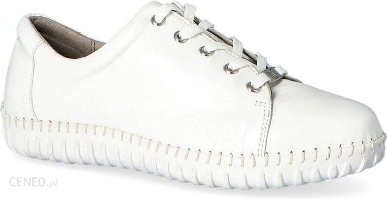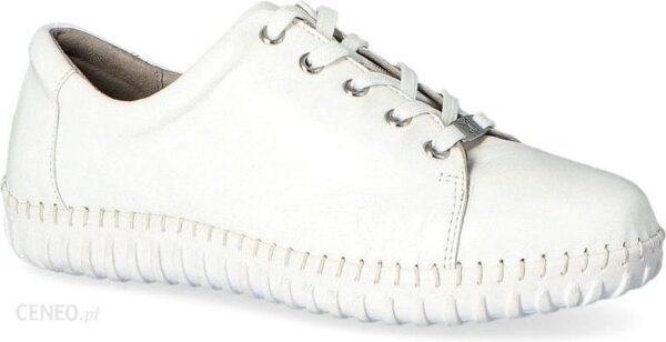 Szukasz wygodnego obuwia na letnie wycieczki? Potrzebujesz komfortowych butów na wczasy czy wyjazd do uzdrowiska? Te półbuty od niemieckiej marki CAPRICE z pewnością Ci się spodobają! Sznurowane trampki utrzymane w klasycznej stylistyce zachwycą Cię wygodą! Buty zostały wykonane z wyjątkowo miękkiej skóry licowej w uniwersalnym, białym kolorze, który świetnie komponuje się z letnimi stylizacjami. Cholewka buta idealnie dopasowuje się do kształtu stopy, skóra jest tak miękka, że nawet Panie z bardzo wrażliwymi stopami czy posiadające halluksy będą zadowolone z wygody. Sznurowanie zapewnia stabilność i sprawia, że buty będą odpowiednie także na szerszą stopę. Warto zwrócić uwagę na innowacyjną wkładkę, opatentowaną przez CAPRICE. Grubsza wkładka o strukturze plastra miodu została wykonana z przypominającego żel, elastycznego tworzywa. Taka wkładka ugina się podczas chodzenia, po czym wraca do pierwotnego kształtu, genialnie amortyzuje wstrząsy, co ma niebagatelne znaczenie dla naszych kolan, stawów i kręgosłupa.Komfortowe buty w klasyczny stylu – niezbędne w każdej szafiePłaska, wyprofilowana podeszwa doskonale chroni przed poślizgnięciem się i pozwala na optymalne ułożenie stopy. Marka CAPRICE jest znana od wielu lat z produkcji wygodnego obuwia, które doceniają najbardziej wymagające klientki. Buty CAPRICE świetnie łączą aktualne trendy mody z komfortem i jakością wykonania. Klasyczne półbuty przydadzą się w każdej szafie, ten model naprawdę pozwala stopom odpocząć po ciężkim dniu. W sznurowanych półbutach CAPRICE spacery będą przyjemnością. Dżinsy, legginsy czy modne dzianinowe spodnie – białe skórzane trampki pasują do wszystkich casualowo – sportowych stylizacji.