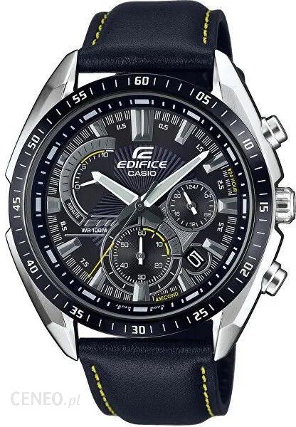 Casio Edifice EFR-570BL-1AVUEF to męski sportowy zegarek o interesującym designie, który przyciąga uwagę. Koperta została wykonana z wysokiej jakości stali szlachetnej, która jest odporna na korozję. Połączono ją z eleganckim skórzanym paskiem z żółtymi przeszyciami. W modelu zastosowano szkło mineralne charakteryzujące się wysoką odpornością na stłuczenia, dzięki swojej elastyczności. Cyferblat z żółtymi akcentami posiada duże i czytelne indeksy w srebrnym kolorze, co sprawia, że odczyt wskazań nie przysparza problemu. Indeksy i wskazówki pokryto warstwą fluorescencyjną Neobrite, która umożliwia odczytanie godziny w ciemności. Stoper odliczający czas sprawi, że zegarek znajdzie zastosowanie w sporcie. Dodatkowo model wyposażono w praktyczny datownik wskazujący aktualny dzień miesiąca. Zegarek posiada precyzyjny mechanizm kwarcowy zasilany baterią, która przy standardowym użytkowaniu zapewnia pracę przez okres 3 lat bez konieczności jej wymiany. Wodoszczelność klasy 100M w połączeniu z zakręcanym deklem pozwalają na swobodny kontakt z wodą np. podczas pływania.