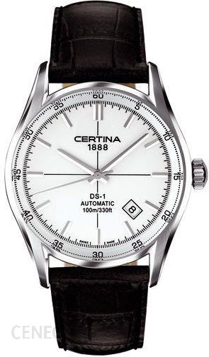 Zegarki męskie Certina to połączenie szwajcarskiej jakości i wyjątkowego designu.Geometryczne kształty, najwyższej jakości materiały i najlepsze szwajcarskie mechanizmy – to wszystko sprawia, że każdy zegarek męski Certina jest niezwykły.Modele męskie Certina to doskonały dodatek dla wyjątkowego mężczyzny. Certina DS-1 Zegarki z kolekcji Certina DS-1 to niezwykłe modele wykonane z najwyzszej jakości materiałów.Każdy zegarek męski Certina DS-1 kryje w sobie wyjątkowy szwajcarski mechanizm świadczący o wysokiej jakości zegarka.Szafirowe szkło i wysoka Wodoodporność zegarków męskich Certina DS-1 podkreślają jego niezwykłą odporność na uszkodzenia mechaniczne.Certina DS 1 C0064071603100 to elegancki męski zegarek, którego najważniejszy element stanowi szwajcarski mechanizm automatyczny. Jego jakość wzbudza podziw i sprawia, że nie sposób go nie docenić. Pozostałe elementy użyte przy produkcji również zaskakują wysokim poziomem.Atrybuty:Kolekcja – DS 1Gwarancja – 2 letnia międzynarodowaAnalogowy – wskazuje czas za pomocą wskazówek, nie posiada dodatkowych funkcji typu chronograf Data Pasek skórzany czarny Tarcza jasna Szkło szafirowe (odporne na zarysowania) – posiada 9/10 pkt w skali Mohsa, zarysować można je jedynie diamentem Mechanizm automatic (napędzany za pomocą wahnika) – zasilany sprężyną napędzającą rotor – ETA 2824-2Wykonany ze stali szlachetnej antyalergicznej (316l) – nie wywołuje reakcji alergicznych i podrażnień skóry Wodoodporność 100m – daje możliwość pływania i nurkowania bez akwalungu Zegarek męski Styl zegarka – Sportowo/EleganckiŚrednica koperty – 39 mmWysokość koperty – 11.98 mmKoperta okrągła