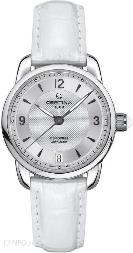 Funkcje: W zegarku Certina zastosowano szwajcarski mechanizm automatyczny ETA 2824-2 Liczba kamieni łożyskujących: 25 Automatyczny naciąg 42 godzinna rezerwa chodu Sekundnik Datownik – dzień miesiąca Certina DS (Double Security) – wzmocniona konstrukcja i podwójne zabezpieczenie. więcej >>> Fluorescencyjne wskazówki i indeksy Właściwości: Szafirowe szkiełko Koperta wykonana ze stali Pasek skórzany Wodoszczelność 100 m Wymiary koperty: średnica 32,5 mm; grubość 10 mm Rozstaw uchwytów koperty (szerokość paska/bransolety): 16 mm Waga: 54 gram Informacje dodatkowe: Fabrycznie nowy, oryginalny i pełnowartościowy zegarek Certina Oryginalne opakowanie producenta Instrukcja obsługi Gwarancja na okres 24 miesięcy Uwaga: LuxTime.pl jest autoryzowanym przez firmę Certina sklepem internetowym. Wszystkie oferowane do sprzedaży zegarki Certina sprowadzamy bezpośrednio od producenta, dlatego są one objęte pełną ochroną gwarancyjną. Dołączona do zegarka karta gwarancyjna z pieczątką autoryzowanego sprzedawcy, umożliwia Państwu realizację zgłoszenia naprawy w dowolnym punkcie serwisowym Certina na świecie. W przypadku pytań lub wątpliwości zapraszamy do kontaktu, nasz wykwalifikowany personel zapewnia Państwu pełne wsparcie przed i po sprzedażowe.