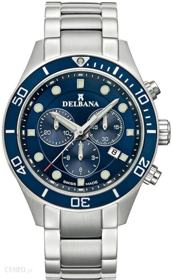 Zegarek męski Delbana 41701.718.6.044 Informacje o produkcie : Zegarek męski Delbana 41701.718.6.044 Rodzaj – Zegarek męski Pochodzenie – Szwajcarskie Wskazanie czasu – Analogowe Pasek/Bransoleta – Bransoleta Styl – Klasyczny Materiał koperty – Stal szlachetna Materiał bransolety – Stal szlachetna Kształt koperty – Okrągła Kolor koperty – Srebrny Mechanizm – Kwarcowy Kolor tarczy – Niebieski Kolor bransolety – Srebrny Szkiełko – Szafirowe Gwarancja – 2 lata Szerokość koperty – 42mm Grubość koperty – 12mm Wodoszczelność – Wodoszczelność 100m Kategoria : Zegarki męskie Dodatkowe atrybuty : Chronograf – często nazywany również stoperem, pozwala na bardzo dokładny pomiar czasu. Datownik – Dodatkowy element tarczy, wskazujący aktualny dzień miesiąca