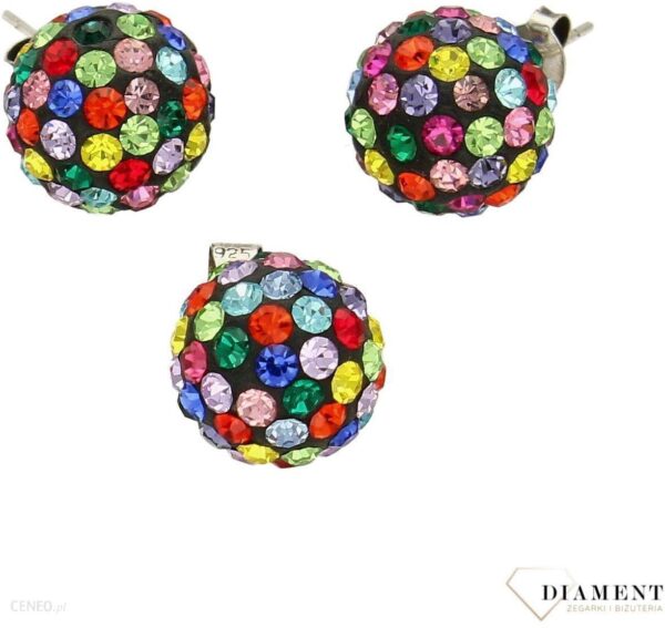 Srebrne kolczyki kulki wykonane z masy w którą wtopione zostało całe mnóstwo kolorowych kryształków. Dodające blasku każdej, nawet najprostszej stylizacji. Kolczyki są wykonane ze srebra próby 925 na zapięcie typu sztyft. Będą pięknym prezentem dla kobiety kochającej połyskujące ozdoby ucha. Do kolczyków można dobrać wisiorek i stworzyć piękny komplet biżuterii na prezent dla bliskiej osoby lub dla siebie.Średnica każdej z kulek wynosi 1,1 cmTa zawieszka będzie idealną ozdobą zarówno codziennych, casualowych stylizacji jak i bardziej eleganckich czy wieczorowych. To uniwersalna biżuteria, która sprawdzi się także jako prezent na wiele okazji. Zawieszki sprzedawane są bez łańcuszka, ale w naszej ofercie z powodzeniem można znaleźć wiele wzorów srebrnych łańcuszków, które stworzą z wisiorkiem kompletną ozdobę, na przykład takie o splocie typu ankier, żyłka, kostka czy singapur, które znajdziesz tutaj.Waga kompletu to około 4,25 gSprawdź pozostały asortyment!> Srebrne pierścionki> Srebrne kolczyki> Srebrne naszyjniki> Bransoletki srebrneNasz sklep internetowy z biżuterią dla kobiet jest autoryzowanym sprzedawcą najwyższej jakości złota w Polsce. Cała kolekcja biżuterii Diament zakupiona w naszym sklepie posiada 2 letnią gwarancję i zapakowane są w oryginalne opakowanie.