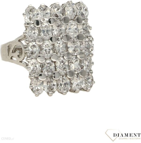 Srebrny pierścionek w kształcie prostokąta ozdobiony cyrkonią w kolorze białym. Pierścionek srebrny próba 925. Pierścionek spodoba się niezależnej, odważnej kobiecie, kochającej wyraziste dodatki, które podkreślają osobowość. Biżuteria zachwyca ciekawą formą oraz nowoczesnym designem. Biżuterię wykonano z najwyższej jakości srebra, kruszcu od wielu setek lat symbolizującego głębię emocjonalną, duchowość, odwagę, wewnętrzną harmonię i żeńską energię. Ten piękny materiał jubilerski jest ceniony przez kobiety na całym świecie za swoją chłodną, subtelną barwę. Biżuteria będzie idealnym zwieńczeniem przekornej stylizacji. Sprawdzi się zarówno na co dzień, jak i na bardziej oficjalne okazje. Szerokość elementu ozdobnego wynosi 1,6 cm, natomiast grubość 0,5 cm.Srebrna biżuteria dostępna w naszym sklepie to połączenie klasy, stylu oraz elegancji. Starannie wyselekcjonowane dodatki zachwycają wysoką jakością użytych materiałów, dbałością o każdy, nawet najmniejszy szczegół oraz niebywałą precyzją wykonania. Stworzone z myślą o każdej kobiecie, doskonale prezentują się w każdych warunkach. Zapraszamy do zapoznania się z pozostałą częścią naszej wyjątkowej kolekcji.Zerknij na pozostałą ofertę!> Bransoletki damskie> Kolczyki srebrne> Pierścionki srebrne> Naszyjniki srebrneNasz sklep internetowy ze złotą i srebrną biżuterią Diament jest autoryzowanym dystrybutorem marki. Cała kolekcja złotej i srebrnej biżuterii Diament zakupiona w naszym sklepie posiadają 2 letnią gwarancję i zapakowane są w oryginalne opakowanie.