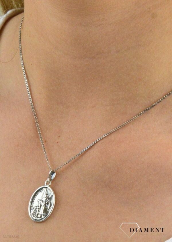Zawieszka srebrna Św. Michał owalna to propozycja od Sklepu Jubilerskiego Diament. Piękny medalik o bogatej symbolice religijnej. Biżuterię religijną wykonano z najwyższej jakości srebra o próbie 925. Biżuteria z motywem sakralnym to wspaniała pamiątka i idealny prezent na takie okazje jak chrzest, bierzmowanie czy pierwsza komunia.waga 3,30 gSrebrna biżuteria dostępna w naszym sklepie to połączenie klasy, stylu oraz elegancji. Starannie wyselekcjonowane dodatki zachwycają wysoką jakością użytych materiałów, dbałością o każdy, nawet najmniejszy szczegół oraz niebywałą precyzją wykonania. Stworzone z myślą o każdej kobiecie, doskonale prezentują się w każdych warunkach. Zapraszamy do zapoznania się z pozostałą częścią naszej wyjątkowej kolekcji.> Naszyjniki damskie> Bransoletki damskie> Kolczyki damskieNasz sklep internetowy z biżuterią dla kobiet jest autoryzowanym sprzedawcą najwyższej jakości srebra w Polsce. Cała kolekcja srebrnej i złotej biżuterii Diament zakupiona w naszym sklepie posiada 2 letnią gwarancję i zapakowane są w oryginalne opakowanie.