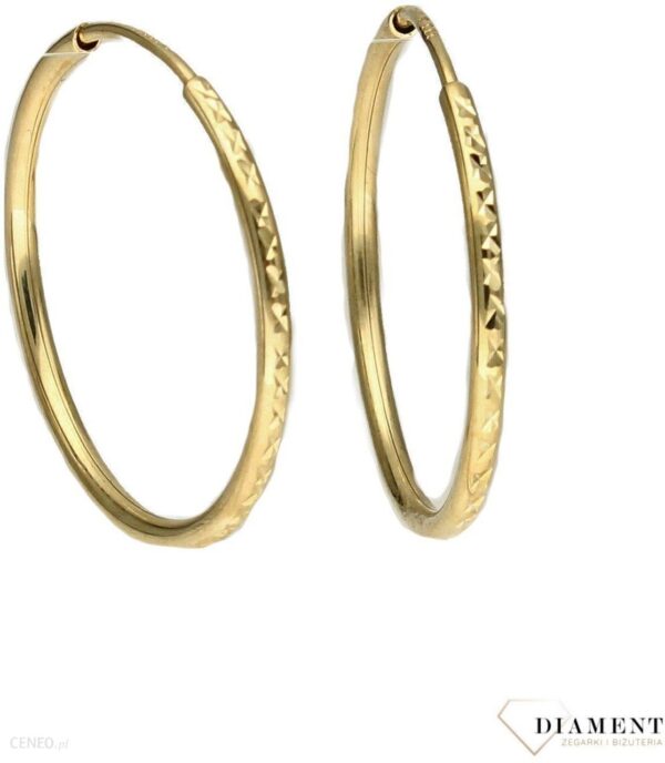 Diament Złote kolczyki koła 333 cienkie grawerowane 24 cm KL9823B333