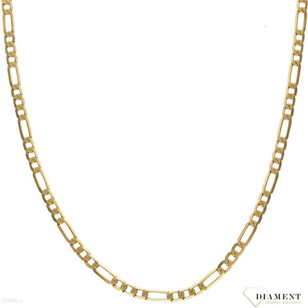 Klasyczny i uniwersalny łańcuszek o splocie figaro, wykonany z żółtego złota próby 585. Waga łańcuszka wynosi około 9,03 g. Łańcuszki to uniwersalne dodatki, które sprawdzają się na każdą okazję i dla kobiet w każdym wieku. Złoty łańcuszek jest uniwersalnym dodatkiem również dla mężczyzny. Piękny grawer na łańcuszku dodaje uroku i blasku. Wykonany z największą starannością i dbałością o każdy szczegół. Biżuterię można zestawić z innymi dodatkami dostępnymi w naszej ofercie, kolczykami, wisiorkiem lub innymi łańcuszkami. Uniwersalna biżuteria, która sprawdzi się jako niezwykle ponadczasowy dodatek do każdej stylizacji.Złota biżuteria dostępna w naszym sklepie to połączenie klasy, stylu oraz elegancji. Starannie wyselekcjonowane dodatki zachwycają wysoką jakością użytych materiałów, dbałością o każdy, nawet najmniejszy szczegół oraz niebywałą precyzją wykonania. Stworzone z myślą o każdej kobiecie, doskonale prezentują się w każdych warunkach. Zapraszamy do zapoznania się z pozostałą częścią naszej wyjątkowej kolekcji.Sprawdź pozostałe łańcuszki!> Złote łańcuszkiStwórz komplet!> Złote zawieszki> Złote bransoletki> Złote naszyjnik> Złote kolczyki> Złote pierścionkiNasz sklep internetowy ze złotą biżuterią Diament jest autoryzowanym dystrybutorem marki. Cała kolekcja złotej biżuterii Diament zakupiona w naszym sklepie posiadają 2 letnią gwarancję i zapakowane są w oryginalne opakowanie.