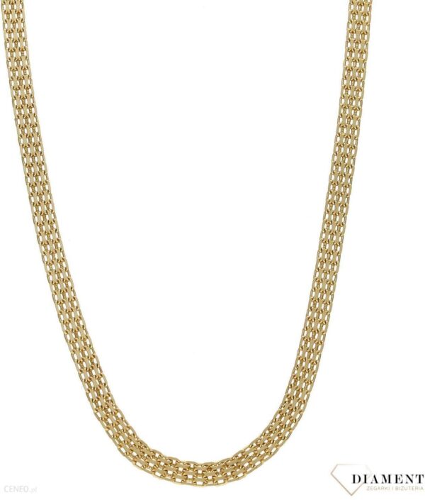 Klasyczny i uniwersalny naszyjnik bismarck wykonany z żółtego złota próby 585 o wadze około 6,08 g. Łańcuszki to uniwersalne dodatki, które sprawdzają się na każdą okazję i dla kobiet w każdym wieku. Piękny grawer na łańcuszku dodaje uroku i blasku. Wykonany z największą starannością i dbałością o każdy szczegół. Biżuterię można zestawić z innymi dodatkami dostępnymi w naszej ofercie, kolczykami, wisiorkiem lub innymi łańcuszkami. Uniwersalna biżuteria, która sprawdzi się jako niezwykle ponadczasowy dodatek do każdej stylizacji.Złota biżuteria dostępna w naszym sklepie to połączenie klasy, stylu oraz elegancji. Starannie wyselekcjonowane dodatki zachwycają wysoką jakością użytych materiałów, dbałością o każdy, nawet najmniejszy szczegół oraz niebywałą precyzją wykonania. Stworzone z myślą o każdej kobiecie, doskonale prezentują się w każdych warunkach. Zapraszamy do zapoznania się z pozostałą częścią naszej wyjątkowej kolekcji.Sprawdź pozostałe łańcuszki!> Złote łańcuszkiStwórz komplet!> Złote zawieszki> Złote bransoletki> Złote naszyjnik> Złote kolczyki> Złote pierścionkiNasz sklep internetowy ze złotą biżuterią Diament jest autoryzowanym dystrybutorem marki. Cała kolekcja złotej biżuterii Diament zakupiona w naszym sklepie posiadają 2 letnią gwarancję i zapakowane są w oryginalne opakowanie.