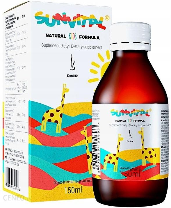 Duolife Sunvital Natural Kids Formuła Płyn 150mlW pełni naturalny, bazujący na czystych składnikach roślinnych, bogaty w witaminy i minerały, dodatkowo uzupełniony cynkiem organicznym – ten syrop to prawdziwa bomba zdrowia przeznaczona dla organizmów najmłodszych członków rodziny. Wspiera zdrowy rozwój i prężne działanie układu immunologicznego dziecka, korzystnie wpływa na zdrowie dróg oddechowych. Starannie dobrane, najwyższej jakości standaryzowane składniki roślinne i zastrzeżona formuła z prozdrowotnych drożdży mobilizują mechanizmy odpornościowe u dzieci zdrowych, zmniejszając ryzyko infekcji, pomagają także zwalczać patogeny, gdy te już zaatakowały mały organizm.