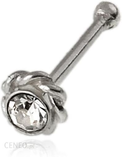 Kolczy do nosa, wykonany ze srebra próby 925 z okrągłym kryształkiem.