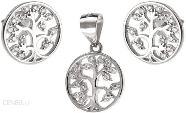 Komplet ze srebra próby 925, Drzewko szczęścia, kolczyki i wisiorek ozdobione kolorowymi i białymi cyrkoniami. Srebro jest rodowane dzięki czemu jest ono bardziej odporne na działanie czynników zewnętrznych, nie ciemnieje. Biżuteria pasuje na różne okazje.