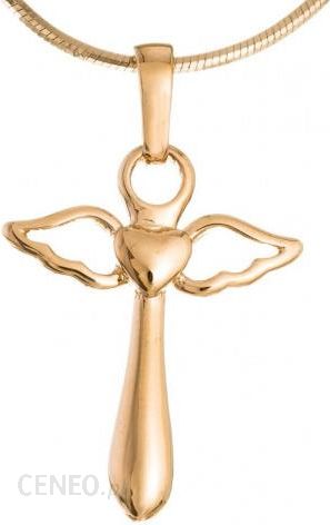 Piękna zawieszka – krzyżyk, stylizowany na postać anioła z sercem P2-N20 GOLD POZŁ Stal chirurgiczna złocona 24 karatowym złotem. Bardzo trwały i piękny wyrób. W komplecie łańcuszek, także z tego materiału, o bardzo gęstym żmijkowym splocie. Produkt zapakowany w prezentowe pudełko, gotowy stać się upominkiem! Specyfikacja: Długość łańcuszka: 50 cm Wysokość zawieszki: 3 cm