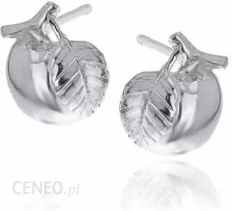 Kolczyki wykonane w całości ze srebra próby 925. Zdobione liściem jabłuszko mierzy 1,3cm długości, 1,2cm szerokości i 5,2mm grubości, waga pary: 2,1g.