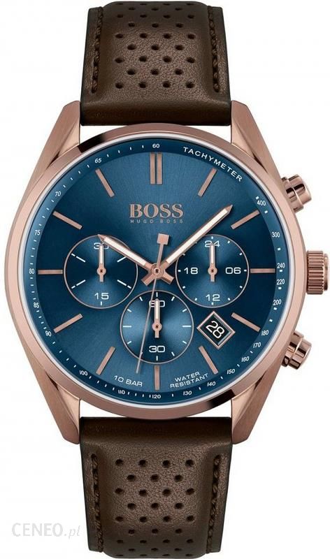 Opis:Cel (dla kogo): MężczyźniMarka: Hugo BossStylowa modaWodoodporność: 100 mKolor paska: brązowyMateriał paska: SkóraKolor tarczy: niebieskiTarcza: analogowaRuch: bateria kwarcowaSzkło: mineralneKorpus / koperta: stalKolor obudowy: różowe złotoKształt zegarka: okrągłySzerokość paska: 22 mmŚrednica koperty: 44 mmGwarancja: 2 lataWaga: 70g