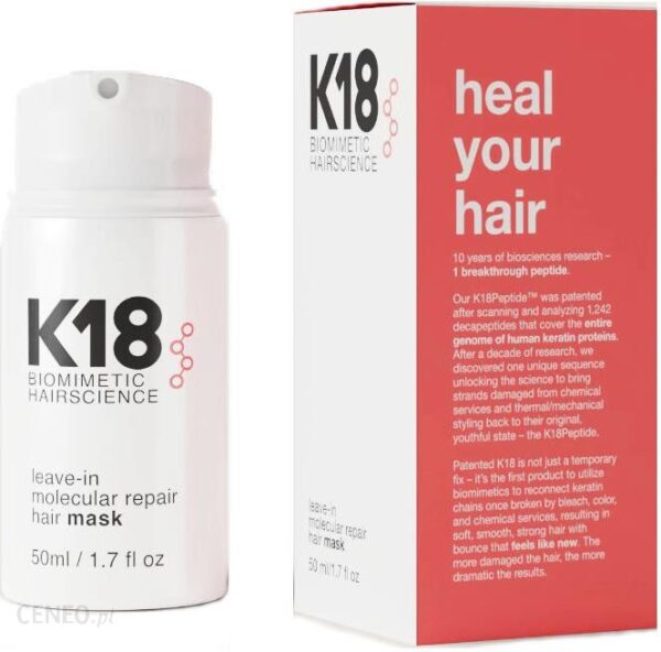 K18 Hair to całkowicie nowa kategoria produktów do włosów wykorzystująca pielęgnację biomimetyczną, która odwraca zniszczenia spowodowane przez rozjaśnianie, farbowanie, stylizację cieplną, a jednocześnie odbudowuje pojedyncze włókna włosów na poziomie molekularnym. Do tej pory produkty do pielęgnacji włosów ukrywały zniszczenia na włosach, pokrywając włosy olejkami, zapewniającymi sztuczne nawilżenie i blask. Kuracje regeneracyjne do włosów działały jak wewnętrzny „klej” do włosów – silny, ale nietrwały. W większości te produkty mogły jedynie zaoferować czasową regeneracje, ale nie działały na prawdziwy problem występujący we włosie.  Przełomowym odkryciem w odbudowie włosów jest Peptyd K18Peptide™. Składnik ten został opatentowany po skanowaniu i analizie 1242 dekapeptydów, które tworzą cały genom ludzkiej odmiany proteiny keratyny. Po ponad dekadzie badań, została odkryta unikalna sekwencja aminokwasów, która jest w stanie przywrócić zniszczone włosy do ich zdrowego i oryginalnego stanu.