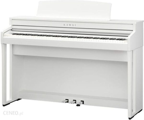 Pianino cyfrowe Kawai CA 49 WH – Nowość od marki Kawai!Kawai CA49W Seria Concert Artist firmy Kawai doczekała się nowych rozwiązań, które niesie ze sobą każdy model pianina cyfrowego do niej należący. Mowa tu w szczególności o specyficznej budowie klawiatury, która jeszcze bardziej zbliża pianino cyfrowe do wzorca akustycznego. Tajemnica świetności pianin serii CA od Kawai tkwi jednak nie tylko w klawiaturze, ale także w ogromie funkcji, które z pewnością spodobają się większości użytkownikom!Kawai CA 49 White to podstawowy model tej serii, zatem spodziewać można się po nim rozwiązań czysto praktycznych. Dzięki temu jednak zachowuje swoją atrakcyjną cenę. Pomimo, że nie znajdziecie w nim ani dotykowego wyświetlacza, ani części funkcji wyższych modeli, nie powinien was zawieść. Dlaczego? Przede wszystkim przez klawiaturę, której budowę gruntownie przemyślano (3 czujniki pod każdym klawiszem zamiast dwóch, co daje wierne odwzorowanie brzmienia przy powtórnym uderzeniu klawisza oraz przeciwwaga pod klawiszami basowymi), 40W głośniki, których moc z pewnością w odpowiedni sposób wypełni wasz dom oraz przez całe mnóstwo funkcji, które sprawią, że pianino to odnajdzie się w roli zarówno instrumentu do ćwiczeń, jak i do zabawy. Nowość od Kawai!Następca modelu CA48Najwyższej klasy drewniana klawiatura z mechanizmem Grand Feel CompactSystem brzmieniowy: Shigeru Kawai SK-EX & Kawai EX concert grand pianoZintegrowany system bezprzewodowy Buetooth 4.0Funkcja lekcji z wbudowanymi klasycznymi etiudami oraz Alfred lesson booksPrzestrzenny dźwięk dla zwiększenia głębi i realizmuKolor: Premium Satin White / Biały MatMożliwy dowóz, rozłożenie oraz krótki instruktaż w domu klienta! Zapraszamy do kontaktu!