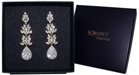 Rozmiar kolczyków:Długość kolczyków: 5,20cmSzerokość maksymalna: 1,10cm Kolor: kryształowy, gold, złoty Materiał:Specjalnie zaprojektowany stop jubilerski, hipoalergiczny, zabezpieczony przed czernieniem warstwą rodu. Wysoką estetykę zapewniają cyrkonie szlifowane sześciennie klasy AAA+ oprawiane ręcznie. Logo KOKONET gwarantuje wysoką jakość! Każde zamówienie pakujemy w gustowne pudełko z logo marki całkowicie bezpłatnie!