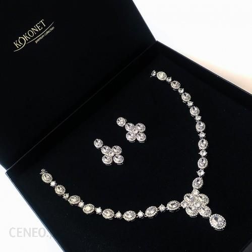 Rozmiar: długość naszyjnika 40,00cm, wymiary elementu ozdobnego 3,20cm x 1,70cm; długość kolczyków 3,20cm, szerokość kolczyków 1,70cm Kolor:kryształowy,srebrny, silver Materiał: Specjalnie zaprojektowany stop jubilerski, hipoalergiczny, zabezpieczony przed czernieniem warstwą rodu. Wysoką estetykę zapewniają cyrkonie szlifowane sześciennie klasy AAA+ oprawiane ręcznie. Logo KOKONET gwarantuje wysoką jakość! Każde zamówienie pakujemy w gustowne pudełko z logo marki całkowicie bezpłatnie!