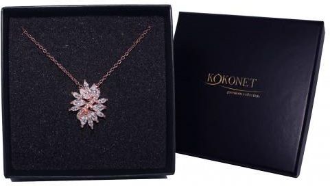 Wymiary:Długość łańcuszka: 41,00 cm + 5,00cm regulacjiDługość zawieszki: 2,50cmSzerokość maksymalna zawieszki: 2,00cmKolor:kryształowy, różowe złoto, rose goldMateriał:Specjalnie zaprojektowany stop jubilerski, hipoalergiczny, zabezpieczony przed czernieniem warstwą rodu. Wysoką estetykę zapewniają cyrkonie szlifowane sześciennie klasy AAA+ oprawiane ręcznie. Logo KOKONET gwarantuje wysoką jakość! Każde zamówienie pakujemy w gustowne pudełko z logo marki całkowicie bezpłatnie!