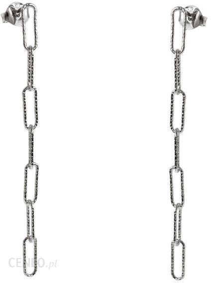 Kolczyki wykonane ze srebra próby 925, z ogniw łańcucha tzw. spinacze, które sa diamentowane i ładnie odbijają światło. Srebro jest rodowane dzięki czemu jest ono bardziej odporne na działanie powietrza.