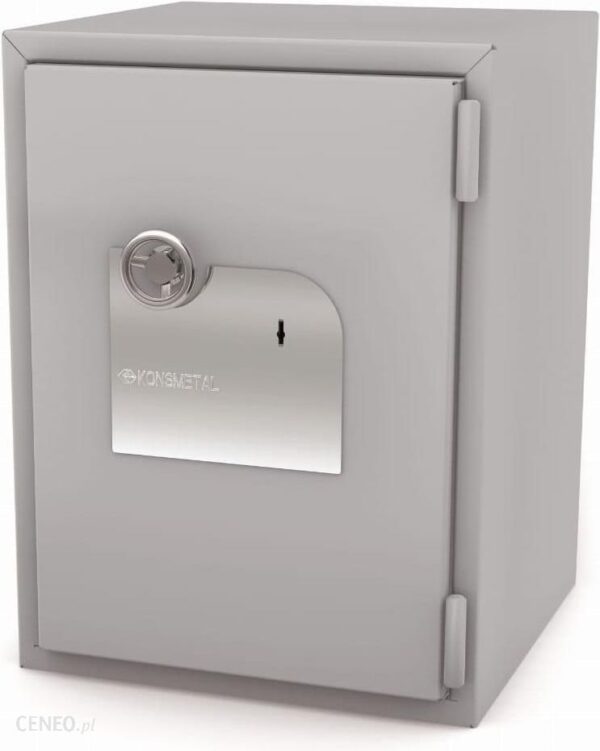 Kasa pancerna KP 67/II – K W tym modelu zamkniecie realizowane zamkiem kluczowym klasa A, klucze L= 95 mm, szt. 2. – Kasy pancerne spełniają wymagania II klasy odporności na włamania według normy PN-EN 1143-1+A1: 2009 – certyfikat Instytutu Mechaniki Precyzyjnej. – Przeznaczone do przechowywania walorów do równowartości do 180 średnich pensji krajowych oraz dokumentów, doskonałe jako sejfy domowe. Opis kasy pancernej klasy II STANDARD – Kasy pancerne klasy II posiadają konstrukcję wielowarstwową wykonaną ze stali konstrukcyjnej wyższej jakości. – Drzwi grubości 80 mm, korpus 55 mm. – Rozbudowany system ryglujący blokuje drzwi w pozycji zamkniętej. System ryglujący drzwi kasy pancernej składa się z 4 ruchomych rygli poziomych, 2 ruchomych rygli pionowych (1 blokuje na górnej krawędzi, drugi blokuje na krawędzi dolnej). Ryglowanie od strony zawiasów realizowane jest ryglem stałym. – W dnie kasy znajduje się otwór do przytwierdzenia do podłoża. – Kasy pancerne wykonujemy w dwóch kolorach: kolorem standardowym (domyślnym) jest jasny szary /popielaty/ RAL 7035, drugim kolorem jest czarny RAL 9005. – Standardowo drzwi są prawe, kąt otwarcia drzwi 200o, lewe drzwi do kasy pancernej za dopłatą 5%. Zamknięcie może być realizowane jednym lub dwoma dowolnymi zamkami z poniższej listy. K – kluczowy klasy A klucze szt. 2 o długości 95 mm. S – szyfrowy mechaniczny klasy A, zamek posiada kod 6-cio cyfrowy. Posiada 1 milion kombinacji zmiany szyfru. E – elektroniczny klasy B, firmy LaGard (USA) model Combogard 39E. Kod 6-cio cyfrowy ustawiany przez użytkownika kasy pancernej. Zamek można zaprogramować dla 1 do 8 użytkowników niezależnych lub dwóch użytkowników zależnych, opóźnienie czasowe od 1 do 99 minut, zabezpieczony przed otwarciem metodą prób i błędów, można go również wyposażyć w moduł cichego alarmu. Zamek zasilany z baterii 9V umieszczonej w klawiaturze. Wygląd stosowanych zamknięć oraz linki prowadzące do sklepu z kasami pancernymi wysokości 670 mm. Zamknięcie prezentowanej kasy pancernej model KP67/II-K Kasa pancerna z zamkiem szyfrowym S. Kasa model KP67/II-S Zamknięcie zamkiem elektronicznym „E”. Kasa KP67/II-E Z zamkiem szyfrowym oraz kluczowym „SK”. Kasa model KP67/II-SK Z dodatkowym zamkiem elektronicznym Combogard. Kasa model KP67/II-EK Z dwoma zamkami kluczowymi „KK”. Kasa model KP67/II-KK Parametry Wysokość zew./wew. – 670/560 mm Szerokość zew./wew. – 500/390 mm Głębokość zew./wew. – 495/361 mm Waga 100 kg. Pojemność 79 litrów Ilość półek szt. – 1 z regulacją wysokości zawieszenia na całej wysokości co 50 mm. Opis wyposażenia dodatkowego: 1. Skrytka wewnętrzna 278 x 387 x 315 mm (wys. x szer. x gł.). Zamkniecie zamkiem cylindrycznym Eurolock 2. Kotwa rozporowa M16 x 200 mm szt.1. Karta katalogowa kas pancernych KP/II Standard Instrukcja obsługi zamka szyfrowego mechanicznego „S” Instrukcja obsługi zamka elektronicznego klasy B Combogard „E”