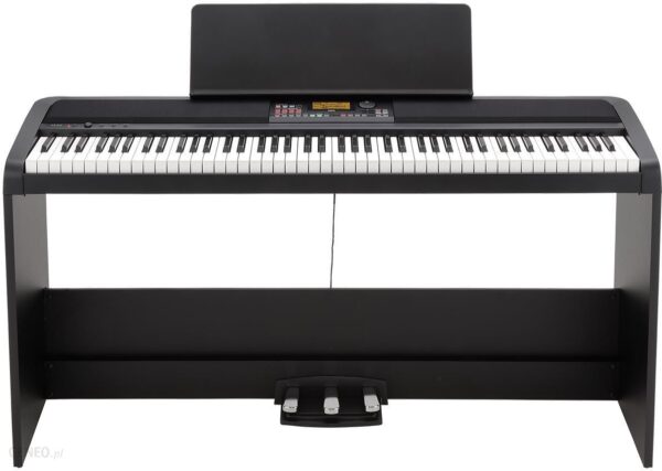 Korg XE20 SPTen zestaw zawiera XE20 cyfrowy zespół pianino wraz z bardzo stabilną podstawą i trzypunktową jednostką, która pozwala na zaawansowaną wydajność.Keyboard NH (Natural Weighted Hammer Action)Keyboard, 88 keys (A0–C8)PedalDamper*, Sostenuto, Soft* *: It supports Half-pedalingDimensions (W x D x H)1,312 mm x 336 mm x 751 mm/ 51.65″ x 13.23″ x 29.57″(including the protrusion and the stand, excluding the music rest)Weight21 kg/46.3 lbsIncluded Items AC adaptor, Music restAccessories (sold separately)Piano bench PC-300 (BK) or PC-110 (BK)