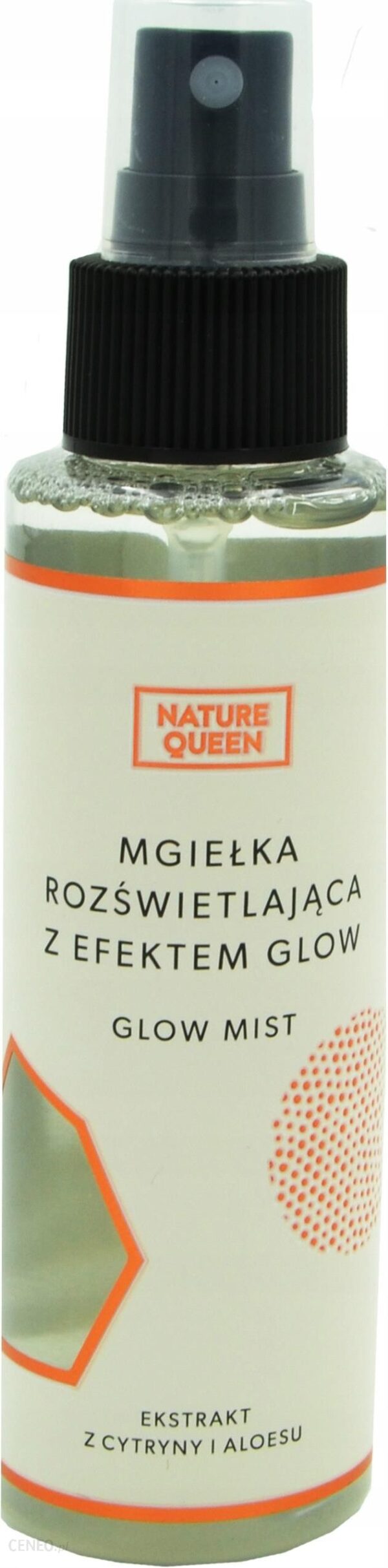 Odświeżająca i rozświetlająca mgiełka do twarzy od Nature Queen z efektem glow, intensywnie nawilża i rozświetla skórę,pozostawiając ją gładką i jedwabiście miękką. Mgiełka stworzona została na bazie ekstraktów roślinnych, które wspomagają działanie ujędrniające, działa odżywczo, niweluje obrzęki oraz opóźnia procesy starzenia. Mgiełkazapobiega utracie wody przez naskórek oraz przyśpiesza regenerację.Efekt glow delikatnie podkreśla makijaż i zapewnia natychmiastowy połysk dzięki pigmentom odbijającym światło.hydrolat z róży damasceńskiej ma działanie odświeżające i nawilżające. Rozjaśnia, regeneruje i wzmacnia naczynia krwionośne. Lekko ujędrnia i napina skórę, wygładzając delikatne zmarszczki. Hydrolat przywraca naturalne pH skóry.ekstrakt z aloesu to cenne źródło wielu ważnych naturalnych związków. Regeneruje, stymuluje produkcję kolagenu, uelastycznia działa antyseptycznie i przeciwzapalnie. Dba o odpowiednie nawodnienie skóry, przeciwdziałając jej wysuszeniu.ekstrakt z cytryny normalizuje pracę gruczołów łojowych, działa antyoksydacyjnie i rozjaśniającowyciąg z kiełków pszenicy pomagają w walce z wolnymi rodnikami a także poprawia jędrność skóry przez co staje się ona widocznie zdrowsza i promienna. Dlatego też są bardzo cenne dla skóry dojrzałej.Skład INCI: Aqua, Glycerin, Butylene Glycol, Polysorbate 20, Aloe Barbadensis Leaf Extract, Propanodiol,Panthenol, Citrus Medica Limonum Extract, Triticum Vulgare Extract, Tetrasodium GlutamateDiacetate, Caprylyl Glycol, Parfum, Caprylhydroxamic Acid, MICA.Sposób użycia: Stosuj kilka razy dziennie w celu utrwalenia makijażu, rozświetlenia twarzy lub jako odświeżeniew ciągu dnia, pryskając twarz mgiełką z odległości 20-30 cm.Pojemność: 100ml