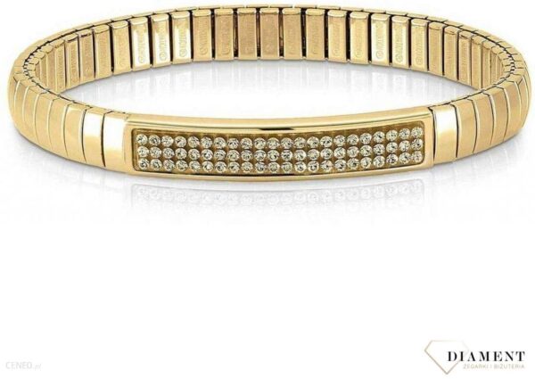 Bransoletka Nomination Extension Gold – Szampańskie Kryształy 043212 024.Elastyczna bransoletka wykonana ze stali szlachetnej pokrywana PVD w kolorze złota z szampańskimi kryształami Swarovskiego.Długość: 18 cmSzerokość: 0,7 cmNomination to światowy lider specjalizujący się w produkcji biżuterii ze złota stali szlachetnej.Początek swojej działalności datuje na 1987 roku, kiedy zaprojektowano pierwszą bransoletkę z kolekcji Composable. W jej skład wchodzi zestaw szlachetnych, wymienialnych elementów, dzięki którym dopasowanie biżuterii pod osobiste preferencje stało się prostsze niż kiedykolwiek! Możliwość personalizacji stwarza bowiem idealne warunki ku temu, aby wyrazić swój gust i temperament.Specjalnością marki Nomination jest produkcja damskiej i męskiej biżuterii, przy zastosowaniu rzemieślniczych technik i najwyższej jakości materiałów. Stal szlachetna w połączeniu z 18-karatowym złotem, cyrkoniami, szlachetnymi, półszlachetnymi kamieniami czy naturalnymi diamentami stanowi małe dzieło sztuki.Nomination jako marka jest kojarzona z synonimem oryginalnego designu, innowacyjnych rozwiązań oraz wysokiej jakości oferowanych produktów.> Charmsy Nomination> Cała oferta NominationNasz sklep internetowy z biżuterią Nomination jest autoryzowanym dystrybutorem marki. Wszystkie damskie i męskie zegarki Nomination oraz biżuteria zakupione w naszym sklepie posiadają 2 letnią gwarancję i zapakowane są w oryginalne opakowanie.