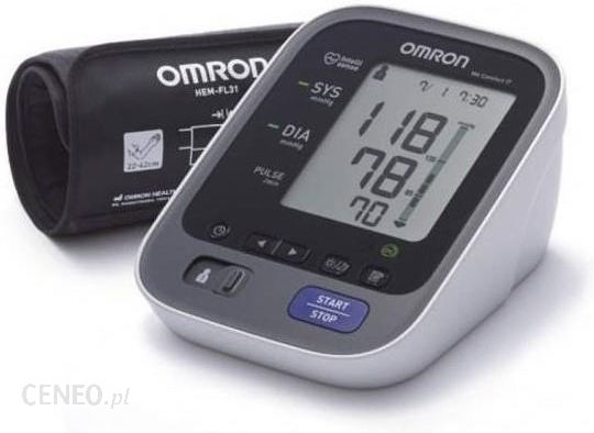 Ciśnieniomierz OMRON M7 Intelli IT to kompaktowy, w pełni zautomatyzowanym ciśnieniomierz ramieniowy z mankietem usztywnianym o rozmiarze 22-42 cm. Urządzenie działa na zasadzie oscylometru. W celu umożliwienia wygodnego, kontrolowanego pompowania urządzenie wykorzystuje zaawansowaną technologię IntelliSense, która wykrywa czy mankiet jest poprawnie zamocowany na ramieniu, co pozwala uniknąć jednego z najczęściej popełnianych błędów podczas pomiaru ciśnienia i potrzeby ponownego napompowania. Jeżeli mankiet jest założony poprawnie urządzenie informuję Cię o tym na wyświetlaczu LCD specjalną ikoną.