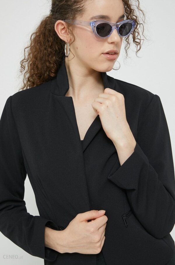 – Dopasowany fason.- Klasyczne klapy.- Model na podszewce.- W ramiona wszyte poduszki.- Z przodu kieszonki.- Niezapinany model.- Gładka dzianina.- Długość rękawa: 59 cm.- Długość: 52 cm.- Szerokość pod pachami: 41 cm.- Szerokość w ramionach: 37 cm.- Wymiary podane dla rozmiaru: 36.