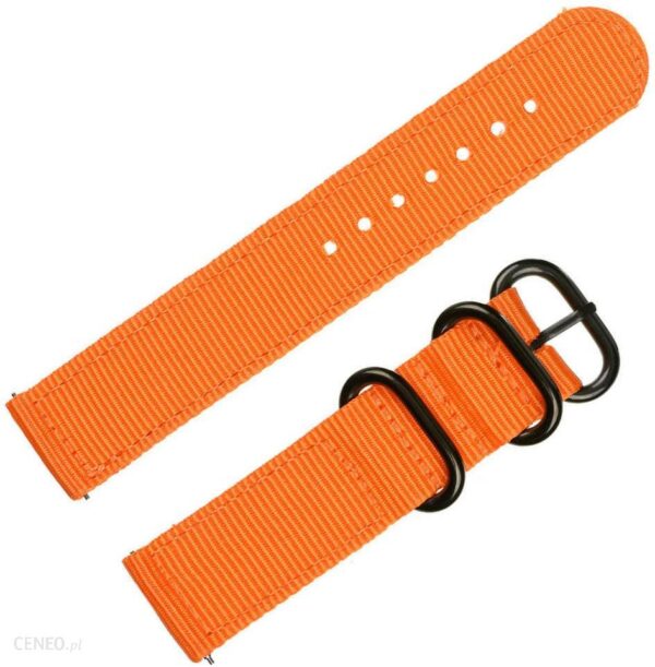 Materiałowy pomarańczowy matowy prosty dwuczęściowy pasek do zegarka Pacific typu Zulu. Szerokość 20 mm. Pasek pasuje do wszystkich zegarków ze standardowym mocowaniem o szerokości 20 mm. Teleskopy w zestawie