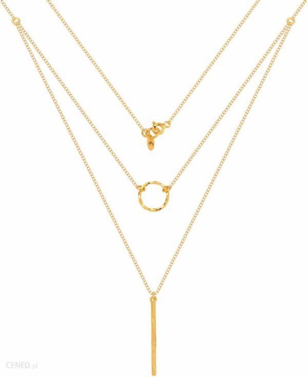 Stylowy, podwójny naszyjnik z kółeczkiem i podłużnym, ozdobnym elementem to idealna i nowoczesna biżuteria dla modnych kobiet.