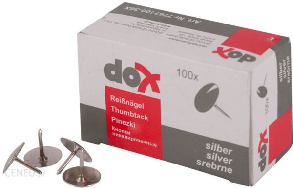 Metalowe pinezki w kolorze srebrny pakowane po 100 szt. Jednostka sprzedaży 1 opakowanie