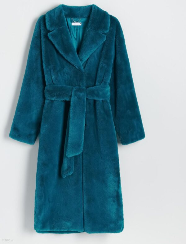 Reserved – Płaszcz ze sztucznego futra – Turkusowy