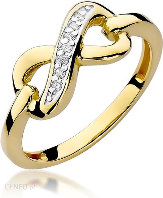 Stylowy pierścionek ze złota z brylantem. Jest to modny wzór, który prezentuje się bardzo elegancko i w wyrafinowany sposób podkreśla charater swojej właścicielki. Wąska szyna wykonana została z żółtego złota, o próbie 585. W centralnej części została ona przedzielona symbolicznym znakiem nieskończoności, częściowo ozdobionym diamentami o szlifie brylantowym, o oznaczeniu 0,04ct H/Si. Ten elegancki pierścionek ze złota jest wysokiej jakości, pełnowartościowym wyrobem, który znakomicie sprawdzi się jako prezent dla kobiety w każdym wieku lub na specjalne okazje, przykładowo jako prezent urodzinowy bądź pamiątka na Komunię lub Chrzest, a także jako wyjątkowy pierścionek zaręczynowy. Przy zakupie istnieje możliwość wyboru dokładnego rozmiaru. Do zakupu dołączone jest eleganckie opakowanie oraz certyfikat diamentu oraz złota. Złota biżuteria jest jedną z najbardziej pożądanych dodatków, a wzbogacona o diamenty kojarzy się z niezykłym luksusem i pięknem, które nie przemija. Wykonanie z materiałów tak wysokiej jakości gwarantuje wieloletnie zadowolenie i ponadczasową wysoką wartość. Biżuteria ze złota idealnie pasuje jako subtelne dodatki na co dzień, często o symbolicznym charakterze, ale także na wyjątkowe okazje, w formie pamiątkowej. ☛ Zobacz także: ✔ Wszystko, co musisz wiedzieć o diamentach ✔ Jak wybrać rozmiar pierścionka? ✔ Jak dbać o biżuterię? ☛ Sprawdź naszą ofertę biżuterii ze złota ZŁOTA BIŻUTERIA SAXO