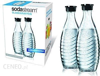 Zestaw 2 szt. Szklana butelka karafka do ekspresów SodaStream Crystal Zestaw 2 zapasowych butelek do ekspresów SodaStream Crystal i SodaStream Penguin Elegancka szklana karafka SodaStream przyciągnie spojrzenia i będzie ozdobą każdego stołu. Goście będą zachwyceni nie tylko smakowitym napojem pełnym bąbelków, ale również stylowym designem karafki. Dzięki SodaStream Crystal wodę z kranu w kilka sekund zamienisz w wodę gazowaną. Wodę gazowaną wytworzysz bezpośrednio w butelce, podpinając ją do ekspresu. Zasady użycia: Przed użyciem opłucz butelkę w letniej wodzie Butelki przechowuj napełnione wodą w lodówce Nasycaj gazem jedynie czystą wodę – bez syropu Nie wyjmuj butelki podczas gazowania Nie używaj butelek po upłynięciu daty ważności lub uszkodzonych Zarówno korek, jak i butelkę można bezpiecznie myć w zmywarce. Typ produktu Szklana butelka typu karafka pasuje do ekspresu SodaStream Crystal hermetyczne zamknięcie Pojemność 2 x 615 ml
