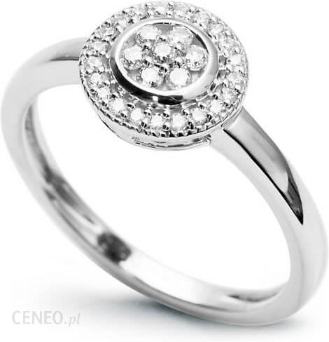 Staviori Pierścionek. 28 Diamentów, szlif brylantowy, masa 0,15 ct., barwa H, czystość SI2. Białe Złoto 0,585. Średnica korony ok. 12 mm.
