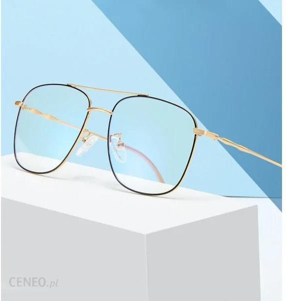 Czarno-złote aviatory druciane okulary zerówki filtr Blue Light komputera damskie i męskie 2547-1 – oprawka korekcyjna, rozkręcalna